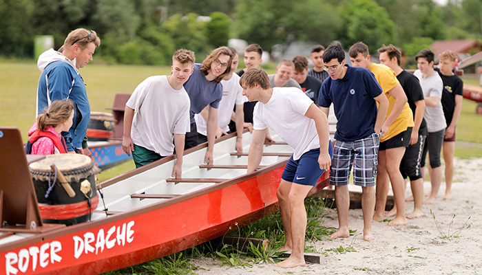 After having lunch together, everyone went on to the Haselbach Lake to participate in an exciting dragon boat race: Siegen against Meuselwitz! After a close head-to-head race, the trainees from Meuselwitz finally took home the victory. At the end of the day, all trainees had a barbecue together thus rounding off an eventful day.